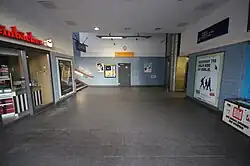 Zwischen dem Haupteingang und den Bahnsteigzugängen befindet sich eine Bahnhofshalle.