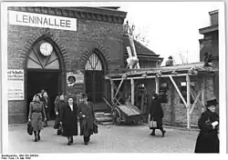 Das Empfangsgebäude dieses Bahnhofs erlitt im Zweiten Weltkrieg schwere Beschädigungen, konnte aber durch Reparaturen weiter genutzt werden. 1950 erfolgte die Umbenennung der namensgebenden Straße von Landsberger Allee in Leninallee, der Bahnhof wurde mit umbenannt. Ein Jahr später erhielt der Bahnhof am nördlichen Ende einen zweiten Zugang von der Storkower Straße aus.
