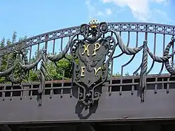 Ein interessantes Detail ist ein in schmückender Weise in Schmiedeeisen ausgearbeitetes Emblem mit den Buchstaben „KPEV“ an der nordwestlich unmittelbar anschließenden Bahnbrücke über die Lindenthaler Allee. Die Buchstaben dieses ehemals in verschiedenen Varianten verbreiteten Emblems stehen für die Königlich Preußische Eisenbahn-Verwaltung, womit die Zugehörigkeit zu den Preußischen Staatseisenbahnen angezeigt wurde.