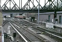 - Foto des 1993 abgerissenen Empfangsgebäudes (1970er oder 1980er Jahre) tagesspiegel.de