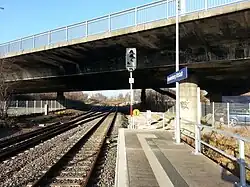 Die Gleisseite des Eingangsgebäudes ist ähnlich der Straßenseite gestaltet. Unterschied ist ein einstöckiger Vorbau am Gebäudeausgang mit flachem Pultdach. Ein ebenfalls eingeschossiger Anbau befindet sich auf der Nordseite des Gebäudes. Südlich gibt es zwei Anbauten, die zumindest teilweise als Schuppen genutzt wurden. Diese sind ebenfalls mit roten Ziegelsteinen gemauert.
