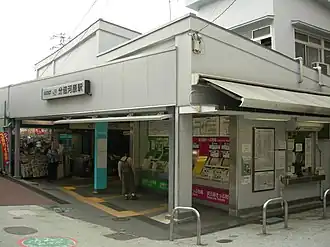 Das eingeschossige Empfangsgebäude steht im spitzen Winkel an der Nordostecke der Streckenkreuzung. Von hier aus gelangt man direkt zum östlichen Bahnsteig der Keiō-Linie und zum nördlichen Bahnsteig der Nambu-Linie. Von der Ostseite des Empfangsgebäudes führt eine angewinkelte Fußgängerbrücke zum südlichen Bahnsteig der Nambu-Linie und zum Bahnhofsvorplatz. Der westliche Bahnsteig der Keiō-Linie ist über einen Personentunnel erreichbar. Zusätzlich verbindet eine Treppe den südlichen Bahnsteig der Nambu-Linie mit dem östlichen Bahnsteig der Keiō-Linie.