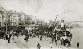 Die Fährschiffe legten im Vorhafen (Avant-port) von Dieppe am Quai Henri IV an, der rund 800 m vom Bahnhof entfernt liegt. Um den Passagieren das Umsteigen zwischen den Zügen und den Fährschiffen zu erleichtern, wurde 1874 zwischen dem Bahnhof und der Anlegestelle und auf der Straße ein Gleis verlegt. Es führte östlich am Empfangsgebäude vorbei, folgte geradlinig dem heutigen Straßenzug Boulevard Berigny–Quai Duquesne und schwenkte vor der Fischhalle auf den Quai Henri IV ein. Dort wurde der Personenbahnhof Dieppe-Maritime angelegt, der aus zwei Gleisen und einem dazwischenliegenden, flachen Gebäude in Ziegelbauweise bestand. In dessen Fortsetzung entstand eine Gleisanlage für den Umschlag von Gütern.