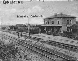 Der Bahnhof Epfenhausen wurde ab 1873 von den Lokalzügen, später Personenzügen auf der Bahnstrecke München–Buchloe bedient. 1914 hielten in Epfenhausen sechs Zugpaare. Dabei fuhren drei Personenzüge von München nach Lindau und zwei von Lindau nach München, einer von München nach Kempten und zwei in der Gegenrichtung, zwei von München nach Buchloe und einer in der Gegenrichtung, sowie ein Zug von Kaufering nach München.[10] Bis 1939 stieg die Zahl der Personenzugpaare auf neun an, von denen vier von München nach Kempten und fünf nach Buchloe fuhren.[11] Im Zweiten Weltkrieg verringerten sich die Zugzahlen wieder, sodass 1944 noch sechs Zugpaare verkehrten.[12]