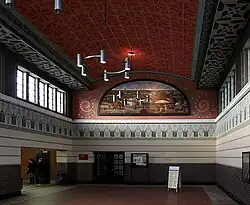 Um das Jahr 2000 ging das bis dahin inzwischen verkommene Empfangsgebäude, für das die Deutsche Bahn keine Verwendung mehr sah, für 690.000 Deutsche Mark in Privatbesitz über. Es folgte seine Sanierung. 2001 entstand innerhalb von acht Monaten ein fünf Meter breites Ölgemälde in der Alten Cuesterey, einem etwa 200 Jahre alten Haus in Borbeck, geplant und ausgeführt durch eine Borbecker Firma und gestaltet von Adolf Lohmann (* 1928; † 2018) mit Borbecker Motiven, darunter das Schloss Borbeck, die St.-Dionysius-Kirche, der Steenkamp-Hof, die Zeche Kronprinz und Voßgätters Mühle. Im Beisein des damaligen Oberbürgermeisters Wolfgang Reiniger wurde die Empfangshalle am 12. April 2001 eingeweiht. Noch einmal wurde die gesamte Halle im Jahr 2013 renoviert. Sie kann für Veranstaltungen und Ausstellungen genutzt werden.[2]