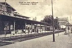 1938 begann im benachbarten Ravensbrück der Bau des dortigen Frauenkonzentrationslagers, wo Zehntausende Frauen inhaftiert wurden. Der Bahnhof Fürstenberg (Havel) wurde Ziel von Hunderten Gefangentransportzügen aus Deutschland und den im Zweiten Weltkrieg besetzten Gebieten und wurde offiziell als „Bhf für das Gefangenenlager Ravensbrück“ geführt.[7]