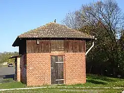 Auf dem Mittelbahnsteig blieb ein kleines Aufsichtsgebäude erhalten, das vermutlich aus den 1930er Jahren stammt. Im Inneren sind noch einzelne Elemente aus der Zeit der aktiven Nutzung des Baus vorzufinden, wie etwa ein Schreibpult und ein Aufenthaltsraum.[7]