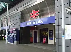 Finsbury Park ist ein Bahnhof im gleichnamigen Londoner Stadtteil, der zum Stadtbezirk London Borough of Islington gehört. Die bedeutende Nahverkehrsdrehscheibe nordöstlich des Stadtzentrums liegt in der Travelcard-Tarifzone 2, an der Kreuzung von vier Hauptstraßen. Im Jahr 2013 nutzten 6,430 Millionen Fahrgäste den Bahnhof und 27,07 Millionen die darunter liegende U-Bahn-Station.[1][2]