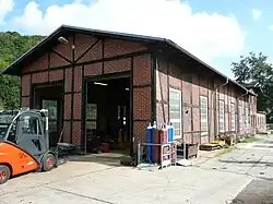 2015 erhaltene Umladehalle der Schmalspurbahn