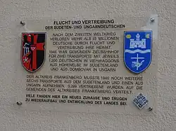 Am 30. Juli 2018 wurde an der Außenmauer eine Gedenktafel für die beiden Transporte der Heimatvertriebenen aus Hohenelbe, Sudetenland und Dómbovár, Ungarn, jeweils 1200 Personen, enthüllt.
