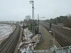 Der Bahnhof besitzt zwei Durchgangsgleise und zwei von diesen nach außen abzweigende Bahnsteiggleise. Beide Bahnsteige sind über eine Fußgängerbrücke miteinander verbunden. Diese Anlage ist typisch für eine Reihe von Bahnhöfen am Berliner Außenring. An beiden Bahnhofsenden gibt es Weichenverbindungen. Am nördlichen Zugang befindet sich ein nicht mehr genutztes Bahnhofsgebäude und ein Vorplatz mit Bushaltestellen. Der südliche Zugang führte früher direkt ins IFA-Werk. Heute befindet sich dort ein öffentlicher Weg durch das Industriegelände. Westlich des Bahnhofs liegt eine Kleingartenanlage und etwas weiter nordöstlich die neue Justizvollzugsanstalt Heidering Wohnbauten im unmittelbaren Bahnhofsumfeld gibt es nicht.