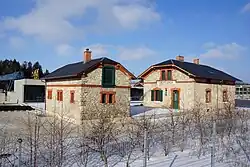 Das Empfangsgebäude ist ein erdgeschossiger Halbwalmdachbau aus Polygonalmauerwerk mit Kniestock, Eckquaderung, Backsteingliederung und hölzernem Perron-Vordach. Zugehörig ist ein Wasch- und Aborthaus in denselben Formen. Der Gebäudekomplex gilt als Baudenkmal.