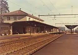Der Bahnhof hat zwei Bahnsteige mit drei Gleisen, wobei das dritte Gleis ein Abstell- und Wartegleis darstellt. Das nördliche Gleis 1 bedient Züge in Richtung Zürich, das südliche Gleis 2 Züge in Richtung Biel. Gleis 3 liegt südlich unterhalb vom Bahnsteig zu Gleis 2 und wird eher selten gebraucht. Unter dem Bahnhof führt eine Unterführung hindurch, mit der man südlich unter den Bahnhof sowie zu den Gleisen 2 und 3 gelangen kann. Zur Infrastruktur des Bahnhofs gehört eine bediente SBB-Schalterhalle mit Reisebüro,[2] ein Avec-Kiosk,[3] Toiletten[2] und Parkplätze. Auf Perron 1 gibt es seit 2010 auch ein Wartehäuschen.[2] Drei Billetautomaten ermöglichen den Billetkauf und zahlreiche andere Dienste auch ausserhalb der Öffnungszeiten des Bahnhofs. Zum Bahnhof gehörte ein selten gebrauchter Güterschuppen, welcher 2013 abgerissen wurde, damit an seinem Standort die Park+Rail-Anlage vergrössert werden konnte.[4] Noch heute vorhanden und in Benutzung sind 2 Gleise, die früher direkt südlich an den Güterschuppen anschlossen und die östlich zu Gleis 1 einspuren, bevor dieses den Bahnhof endgültig verlässt.