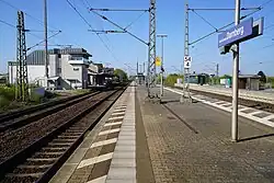 Südlich des Empfangsgebäudes (in Fahrtrichtung Mannheim) befinden sich zusätzliche Gütergleise, die kurz vor dem Empfangsgebäude als Stumpfgleise mit Prellböcken enden.