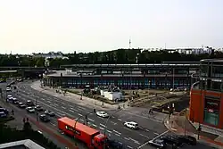 Zwischen der östlichen Bus-Zufahrtsrampe und den Fernbahngleisen ist als einzelnes Gebäude auf dem verbreiterten Bahndamm das Stellwerk für die Weichen und Signalanlagen der östlich anschließenden S-Bahn-Abstellgleise und der Fernbahngleise aufgebaut.