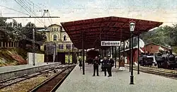 Im Zuge der Elektrifizierung der Vorortbahn 1907 wurde ein Teil des Hangs zum Bahnhofsvorplatz abgetragen und das heutige Gleis 1 gelegt. Dieses und Gleis 2 wurden mit Wechselstrom-Oberleitung versehen. Eine neue Stahlbrücke und neue Treppenzugänge schlossen nun an die Nordost-Fassade an. Das Gebäude wurde mit Stützpfeilern so über dem Gleiskörper geöffnet, dass eine eingleisige Tunneldurchfahrt von Gleis 1 zu den Abstellanlagen entstand (diese ist jedoch seit einigen Jahren gesperrt).