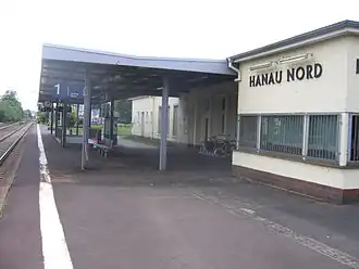 - Bis 1931 war Hanau Nord Umsteigebahnhof für die Hanauer Kleinbahn, zu der auch eine Weichenverbindung bestand, über die Güterverkehr lief.[3]