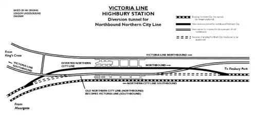 Die Eröffnung des ersten Abschnitts der Victoria Line erfolgte am 1. September 1968. Highbury & Islington war für kurze Zeit die südliche Endstation, bevor die Linie am 1. Dezember desselben Jahres weiter in Richtung Innenstadt zur Warren Street verlängert wurde.[5] Der U-Bahn-Betrieb auf der Northern City Line endete am 4. Oktober 1975, um den Umbau der Station zu ermöglichen (Bau von zwei neuen Bahnsteigen). British Rail übernahm die Strecke und nahm am 16. August 1976 den Betrieb wieder auf.[3] Nach der Privatisierung von British Rail im Jahr 1994 übernahm WAGN den Betrieb der Vorortszüge, seit dem 1. April 2006 ist First Capital Connect dafür zuständig.