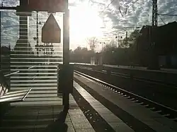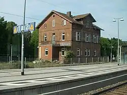 ![]() früheres Empfangsgebäude und einer von zwei aktuellen Bahnsteigen