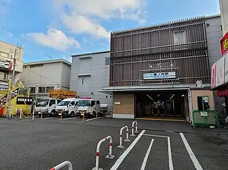 Der Bahnhof steht im Zentrum des Stadtteils Miharuchō. Das Gebiet nördlich der Bahngleise ist ein gemischtes Wohn- und Gewerbeviertel auf einer durch Landgewinnung entstandenen Fläche, mit der Nationalstraße 134 in etwa 200 Metern Entfernung. Das Wohnviertel im Süden ist hügelig und umfasst mehrere kleine Parks. Die Anlage ist von Westen nach Osten ausgerichtet und besteht aus vier Gleisen, die alle dem Personenverkehr dienen. Sie liegen an zwei vollständig überdachten Mittelbahnsteigen. Das zweigeschossige Empfangsgebäude steht an der nordwestlichen Ecke, von wo aus ein Personentunnel die Verbindung zu den Bahnsteigen herstellt. Am östlichen Ende unterquert ein schmaler Straßentunnel die auf einem Damm verlaufende Trasse.