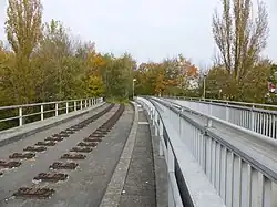 Die in der Nachkriegszeit bestehenden straßenbegleitenden Schienen zur Spinnereimaschinenfabrik Despag bzw. Schubert & Salzer (beginnend nahe dem alten Sägewerk, im Bereich des heutigen McDonald’s) und deren Ringschluss mit dem Industriegleis Nordbahnhof Richtung Raffinerie waren bereits stillgelegt und entfernt. Eine Fußgängerbrücke am Stadtteilpark und einige Schienenfragmente nahe der Autobahn sowie einige Straßenzüge (z. B. ehemals Schwarzer Weg, Wegeführung über Nordlichtkino-Büropa) erinnern heute noch daran. Die Gleise Richtung Militärbahnhof in der Stadtmitte verschwanden mit diesem, auch ein Bedarfshalt zur Landesgartenschau im heutigen Klenzepark wurde wieder aufgegeben.