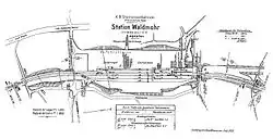 Zudem besaß der Bahnhof eine Güterabfertigung, die ebenfalls noch vorhanden ist. Im südlichen Bahnhofsbereich befanden sich zwei Lagerhäuser sowie eine Laderampe. Unmittelbar nördlich des Bahnhofsgebäudes befand sich ein Haus, das als Waschküche und Abort fungierte. In diesem Bereich lag zudem der Bahnsteig.[19]