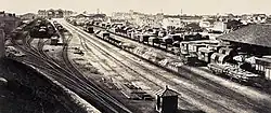 Das Bahnhofsgebäude wurde 1848 in Form eines die Gleise umfassenden U erbaut, es gab einen Flügel für die ankommenden und einen für die abfahrenden Fahrgäste. Diese zwei Flügel wurden durch ein Glasdach zu einer Bahnhofshalle verbunden.