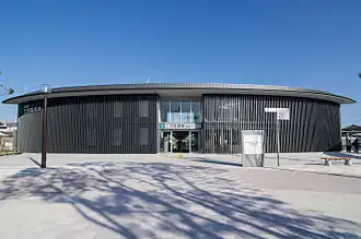 Der Bahnhof steht im zentralen Stadtteil Higashi-Ohama. Die Anlage ist von Osten nach Westen ausgerichtet und besitzt sechs Gleise, von denen vier dem Personenverkehr dienen. Diese liegen an zwei Mittelbahnsteigen, flankiert von je einem Abstellgleis an der Nord- und Südseite. Das seit 2013 bestehende, vom renommierten Architekten Tadao Andō entworfene Empfangsgebäude am westlichen Ende ist ein zweigeschossiges Bauwerk im Stil des Minimalismus, sein Grundriss besitzt die Form eines flachwinkligen Kreissektors.