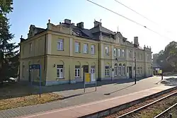 ![]() (2018, Straßenseite) Nałęczów, das Empfangsgebäude