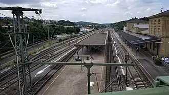 - ↑ Deutscher Bundestag (Hrsg.): Antwort der Bundesregierung auf die Kleine Anfrage der Abgeordneten Matthias Gastel, Sylvia Kotting-Uhl, Christian Kühn (Tübingen), weiterer Abgeordneter und der Fraktion BÜNDNIS 90/DIE GRÜNEN – Drucksache 19/22040 –. Kurzfristig umsetzbare Infrastrukturmaßnahmen im Schienennetz Baden-Württembergs. Band 19, Nr. 22879, 28. September 2020, ISSN 0722-8333, S. 5. BT-Drs. 19/22040