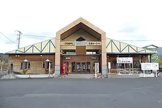 Der Bahnhof liegt am Ortsrand und ist von Südosten nach Nordwesten ausgerichtet. Er besitzt vier Gleise, von denen zwei dem Personenverkehr dienen. Diese liegen an einem teilweise überdachten Mittelbahnsteig, der durch eine gedeckte Überführung mit dem Empfangsgebäude an der Südwestseite der Anlage verbunden ist. In dem Gebäude ist auch ein Restaurant untergebracht. Südöstlich des Bahnhofs steht ein kleines zweigleisiges Depot zum Abstellen von Bahndienstfahrzeugen. Auf dem Bahnhofsvorplatz halten Busse der Gesellschaft Sōya Bus.