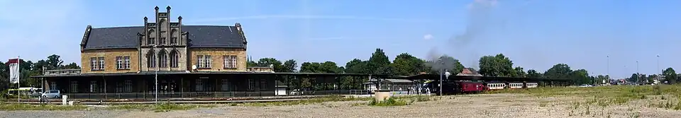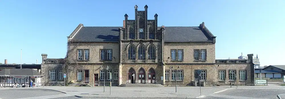 Der Bahnhof besitzt ein nahezu geschlossenes Ensemble aus der Gründungszeit. Es besteht aus einem unter Denkmalschutz stehenden neugotischen Empfangsgebäude von 1862, einem Lokschuppen von 1862, 1889/1892, einem Güterschuppen, einer der ältesten erhaltenen Drehscheiben in Deutschland von 1889, einem Eilgutschuppen und einem Aborthaus. Weiterhin beinhaltet es einen Wasserturm der Bauart Schäfer von 1907/1908. Ein Aufenthaltsgebäude stammt aus dem Jahr 1906, die Stellwerke von 1907/1908, ein Toilettenhäuschen von 1908, ein Fahrkartenschalterhaus von 1909 und ein Wasserkran aus der Zeit um 1955.