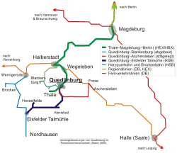 - ↑ Quedlinburg. In: Bahnhofsprogramm Sachsen-Anhalt. Abgerufen am 22. Februar 2016.