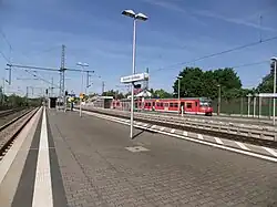 Der Bahnhof besitzt fünf Bahnsteiggleise. Die durchgehenden Hauptgleise 3 und 4 können mit bis zu 200 km/h befahren werden. Im Süden des Bahnhofs befinden sich bis zu elf parallele Gleise,[8] die unter anderem für Abstellungen und Dispositionen sowie als Wendeanlage der S-Bahn benutzt werden. Zudem besteht ein Gleisanschluss zur ARS Altmann Automobillogistik.