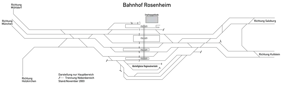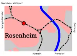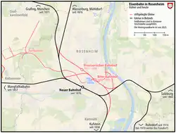 - ↑ Geschichte des Eisenbahnknotens Rosenheim im Rosenheimer Stadtarchiv