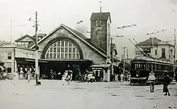 Gegen Ende des 19. Jahrhunderts war die Gemeinde Shibuya noch ein ländlich geprägter Vorort der Stadt Tokio. Am 1. März 1885 eröffnete die Nippon Tetsudō, Japans erste private Bahngesellschaft, den Bahnhof Shibuya. Er lag an der Verbindungsstrecke zwischen dem Bahnhof Akabane an der Tōhoku-Hauptlinie und dem Bahnhof Shinagawa an der Tōkaidō-Hauptlinie; heute bildet diese Strecke den westlichen Teil der Yamanote-Linie. Als Folge des vom Reichstag beschlossenen Eisenbahnverstaatlichungsgesetzes ging die Nippon Tetsudō am 1. November 1906 in staatlichen Besitz über. Die Vorortstraßenbahn Tamagawa Denki Tetsudō (kurz Tamaden) erreichte den Bahnhof Shibuya am 11. August 1907 von Dōgenzaka her, am 3. August 1911 verlängerte auch die Straßenbahn Tōkyō eine ihrer Linien hierher.[12] Im Jahr 1921 setzte das Eisenbahnministerium verschiedene Maßnahmen zur Kapazitätserhöhung der Yamanote-Linie um. Dazu gehörten die Trennung des Personenverkehrs vom Güterverkehr, die Verlegung der Trasse auf einen Bahndamm und die Aufhebung von niveaugleichen Bahnübergängen. Ebenso wurde der Bahnhof um rund 200 Meter nach Norden an seinen heutigen Standort verschoben.[13]
