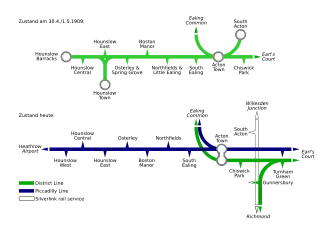 Die Station der District Line existiert heute nicht mehr, von der Verbindungsstrecke nach Acton Town bestehen nur noch einige Brückenwiderlager und ein Teil des Bahndamms. Der Bahnhof der Hauptbahn ist heute noch in Betrieb.