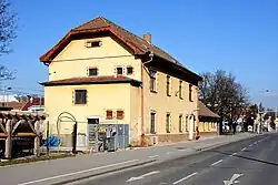 ![]() Der Bahnhof im letzten Jahr des Bahnbetriebes (1988)