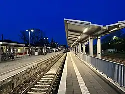 Der Regionalbahnsteig wurde als Kombi-Bahnsteig für Regional- und S-Bahnen gestaltet, der Ende September 2017 in Betrieb ging. Dort halten die Regionalzüge auf der Südseite (Gleis 2, Bahnsteighöhe 55 cm), die Nordseite mit 96 cm hoher Bahnsteigkante[7] liegt am vorhandenen S-Bahn-Gleis 8. Somit entstand für die S-Bahn eine Art Spanische Lösung mit Ein- und Ausstiegsmöglichkeiten auf beiden Seiten. Zwischen S-Bahn und Regionalbahn kann nun am selben Bahnsteig über Rampen und Treppen umgestiegen werden. Der schrankengesicherte Zugang zu diesem Bahnsteig erfolgt an dessen östlichem Ende. Die Kante des vorhandenen S-Bahnsteigs musste infolgedessen in westliche Richtung um mehrere Meter verlängert werden. Der bisher von den Regionalzügen genutzte Hausbahnsteig am Gleis 1 wurde östlich des Empfangsgebäudes im Rahmen der Baumaßnahmen abgerissen.[8]