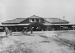 Als Folge des vom Japanischen Reichstag beschlossenen Eisenbahnverstaatlichungsgesetzes gingen Strecke und Anlagen der Nippon Tetsudō am 1. November 1906 in staatlichen Besitz über.[8] Ein Jahr später errichtete das Eisenbahnamt erneut einen Neubau des Empfangsgebäudes, der ab 6. Juli 1917 zur Verfügung stand. Zu den bisher zwei Bahnsteigen kam am 23. Mai 1930 ein dritter hinzu und im Oktober 1935 wurde die nördliche Fußgängerbrücke verbreitert. Über ein halbes Jahrhundert lang konnten Fahrgäste den Bahnhof nur von Westen her betreten, bis am 18. November 1946 der neue Osteingang seine Tore öffnete. Mitte der 1960er Jahre nahm die Japanische Staatsbahn einen Umbau der Anlage vor. Am 20. August 1966 ersetzte ein Tunnel den bisherigen niveaugleichen Bahnübergang im Norden und nahm am selben Tag an der Ostseite einen Containerterminal in Betrieb; außerdem stand ab 6. September 1968 ein vierter Bahnsteig zur Verfügung.[9]