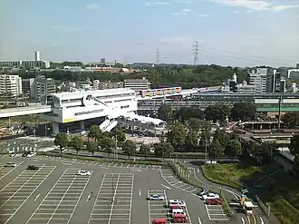 Die hügelige Gegend rund um den Bahnhof war einst sehr ländlich geprägt, mit einzelnen kleinen Dörfern im Kota-Tal. In den 1960er Jahren begann die Entwicklung der Tama New Town, einer Planstadt für mehr als 200.000 Einwohner. Sie sollte dazu beitragen, die Wohnungsnot im Zentrum Tokio zu lindern. Sowohl die Keiō Teito Dentetsu (heutige Keiō Dentetsu) als auch die Odakyū Dentetsu strebten danach, das dafür vorgesehene Gebiet mit neuen Bahnstrecken zu erschließen.[6] Das Verkehrsministerium achtete sorgfältig darauf, dass die geplanten Strecken sich gegenseitig möglichst wenig Konkurrenz machten, und vergab die Konzessionen entsprechend. Beide Unternehmen einigten sich darauf, ihre Strecken im Zentrum auf dem Stadtgebiet von Tama etwa dreieinhalb Kilometer weit parallel zu führen, um den Landverbrauch zu minimieren.[7]