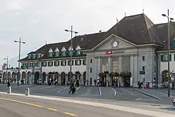 Der aus Mauerwerk bestehende zweite Bahnhof besteht aus insgesamt vier Teilen. Das auf Auers Luzerner Bahnhof berufende Eingangsportal mit hohen Fenstern und die drei Seitenflügel mit Walmdächern und Mansarden. Insgesamt (inklusive Parterre und Mansarden) zählt der Bahnhof drei Stockwerke. Im äussersten Flügel war bis Ende 2013 das Bahnhofbuffet untergebracht.[11]