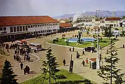 Mit der Verstaatlichung der Toyokawa Tetsudō erfolgte am 1. August 1943 die Integration des Kopfbahnhofs Yoshida in den Bahnhof Toyohashi. Damit bestand nun auch ein direkter Übergang zur Nagoya-Hauptlinie.[7] Ein US-amerikanisches Flächenbombardement am 19. und 20. Juni 1945 zerstörte große Teile der Stadt. Der Bahnhof war ebenfalls davon betroffen: Während das Empfangsgebäude vollständig niederbrannte, blieb das Depot unbehelligt, sodass der Verkehr innerhalb von drei Tagen auf allen Linien wiederaufgenommen werden konnte.[11] Nach jahrelanger Verwendung behelfsmäßiger Baracken wurde am 14. Mai 1950 das neue Empfangsgebäude eröffnet. Es handelte sich um den ersten so genannten „Volksbahnhof“ (民衆駅, Minshū-eki) in ganz Japan – ein Bahnhof, bei dem die Japanische Staatsbahn das Gebäude mit Läden lokaler Gewerbetreibender teilte.[12]