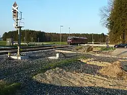 - ↑ Der genaue Zeitpunkt lässt sich derzeit nicht belegen. Der Umbau erfolgte erst nach Stilllegung des Bundeswehr-Anschlusses, die neuen Gleise sind jedoch auf den Luftbildern von 2003 im Bayern-Atlas schon zu sehen, siehe Digitales Orthophoto 2003. In: BayernAtlas. Bayerische Vermessungsverwaltung, abgerufen am 21. Dezember 2024.