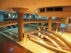 Die Station besitzt fünf Niveaus, zu denen neben dem Bahngleis und der Eingangshalle auch ein Shoppingzentrum und eine Großgarage mit 90 Plätzen gehören.
