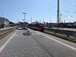 - Gleis 1 ist ein Durchgangsgleis und liegt als Hausbahnsteig direkt vor dem Empfangsgebäude. Hier beginnen und enden die BASF-Züge der S3/S4.