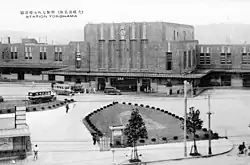 Ein Luftangriff auf Yokohama durch die United States Army Air Forces am 29. Mai 1945 führte zur Zerstörung eines großen Teils der Bahnanlagen, die daraufhin nach und nach wiederhergestellt werden mussten. Von 1959 bis 1972 verband ein Oberleitungsbus den Bahnhof mit dem Stadtzentrum.[13] Das Verkehrsamt der Stadt Yokohama eröffnete am 4. September 1976 ein Teilstück der Blauen Linie der U-Bahn Yokohama zwischen Isezaki-Chōjamachi und dem Bahnhof Yokohama, am 14. März 1985 folgte die Verlängerung zum Bahnhof Shin-Yokohama.[16] Die Tōkaidō-Hauptlinie und die Yokosuka-Linie erhielten am 1. Oktober 1980 getrennte Bahnsteige, am 7. November 1980 eröffnete die Japanische Staatsbahn nach mehrjähriger Bauzeit ein neues Empfangsgebäude an der Ostseite. Aus Kostengründen stellte sie am 1. November 1986 die Gepäckaufgabe ein. Im Rahmen der Staatsbahnprivatisierung ging der bisher staatlich verwaltete Teil des Bahnhofs am 1. April 1987 in den Besitz der neuen Gesellschaft JR East über.[13]