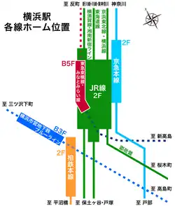 Yokohama ist einer der bedeutendsten Knotenbahnhöfe des Landes. Hier treffen elf Bahnstrecken von sechs verschiedenen Bahngesellschaften aufeinander. JR East ist mit sechs Strecken vertreten: Tōkaidō-Hauptlinie, Keihin-Tōhoku-Linie, Negishi-Linie, Shōnan-Shinjuku-Linie, Yokohama-Linie und Yokosuka-Linie. Hinzu kommen die Keikyū-Hauptlinie von Keikyū, die Tōyoko-Linie der Tōkyū Dentetsu, die Sōtetsu-Hauptlinie der Sagami Tetsudō, die Minatomirai-Linie der Yokohama Kōsoku Tetsudō sowie die Blaue Linie der U-Bahn Yokohama.