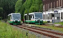 - ↑ a b Holger Drosdeck, Wilfried Rettig: Die Eisenbahnstrecke Aue–Adorf und die schmalspurige Wilzschtalbahn Schönheide-Süd–Carlsfeld, Verlag Jacobi, Fraureuth 2009, ISBN 978-3-937228-00-6, S. 77