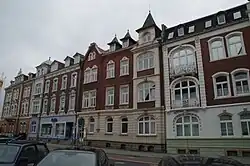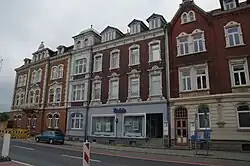 Wohn- und Geschäftshaus Das Haus wurde in der Zeit von 1891 bis 1896 erbaut. Es ist ein dreigeschossiges traufständiges Haus mit einem Mansarddach.